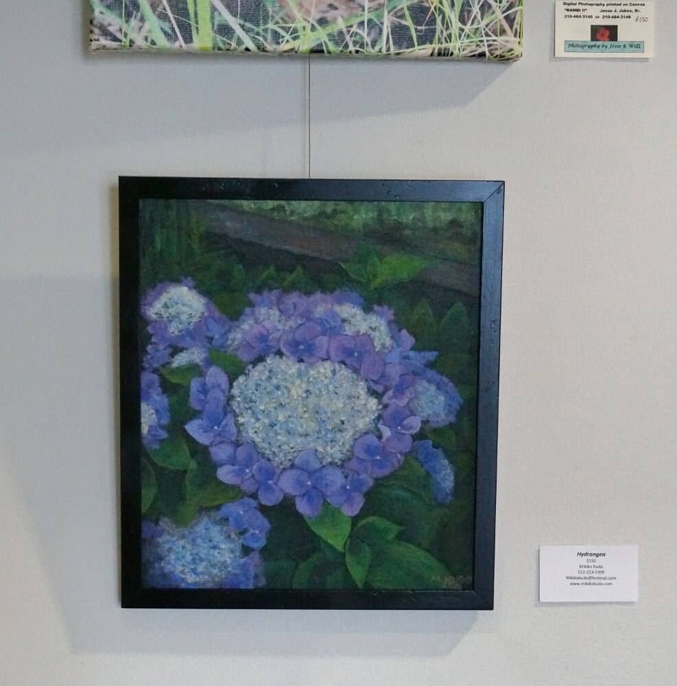 "Hydrangea" and "Big Bend National Park" are displayed at the Wimberley Medical Plaza. September - December 2017.
