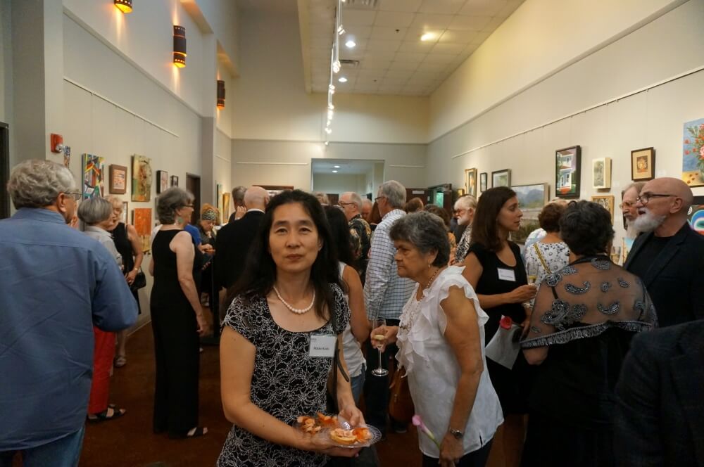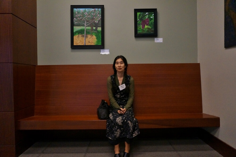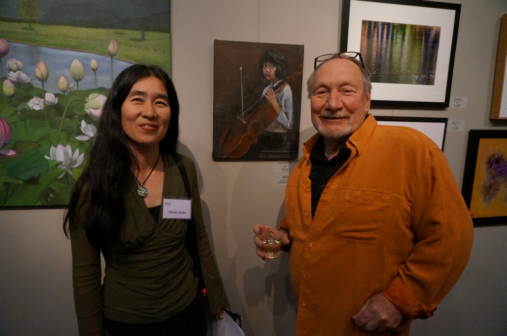 "Of the artists who’s subject is drawn from their own life, there is a sense of order if not serenity in the painting of a garden by Mikiko Kudo, and an arresting undertone of unease or vulnerability in the “Cello Player”, by the same artist." - Excerpt from juror Mona J. Marshall's statement, .