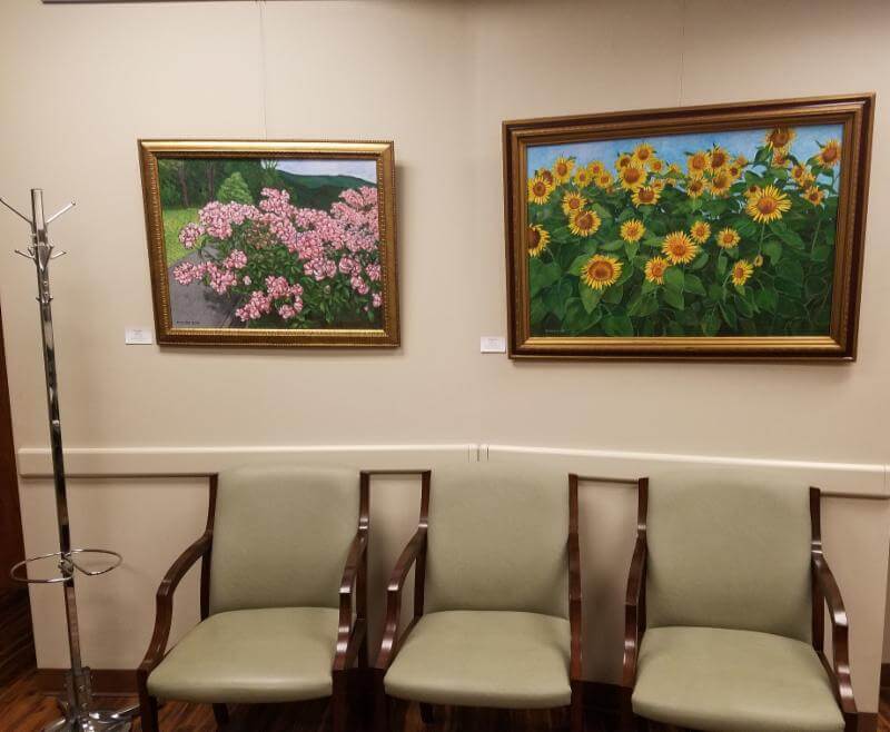"Sunflower Field" and "Rose Garden" are displayed at Dr. Price's Office at the Wimberley Medical Plaza. January - April, 2018.