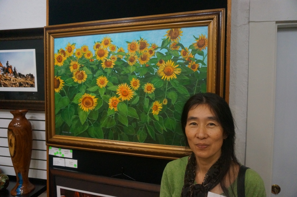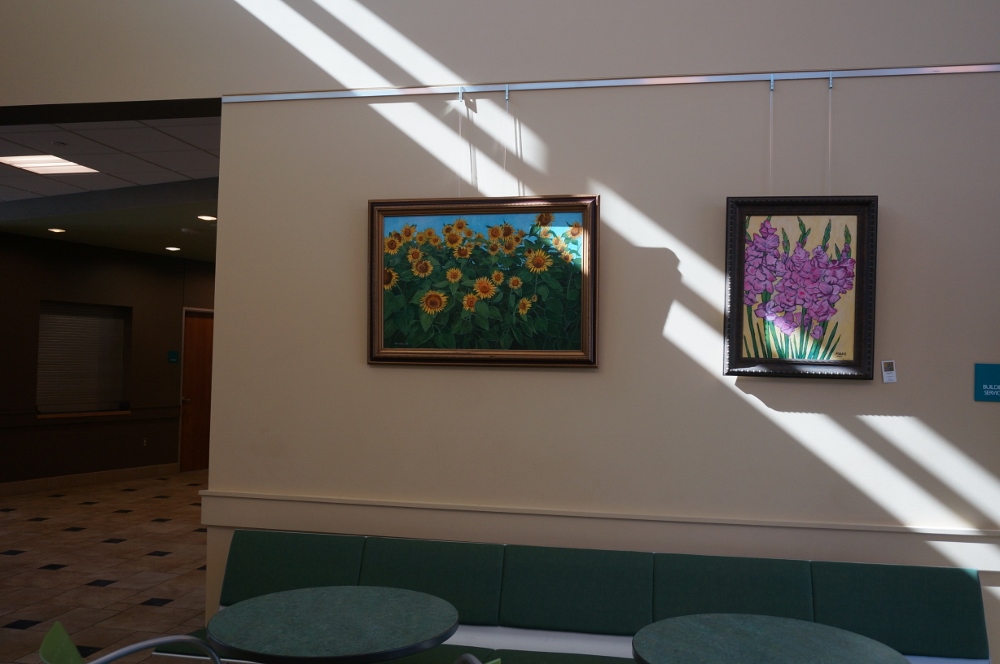"Sunflower Field", "Red Tulips", and "Gladiolus" are displayed at the Kyle Public Library, TX (April - August 2016)